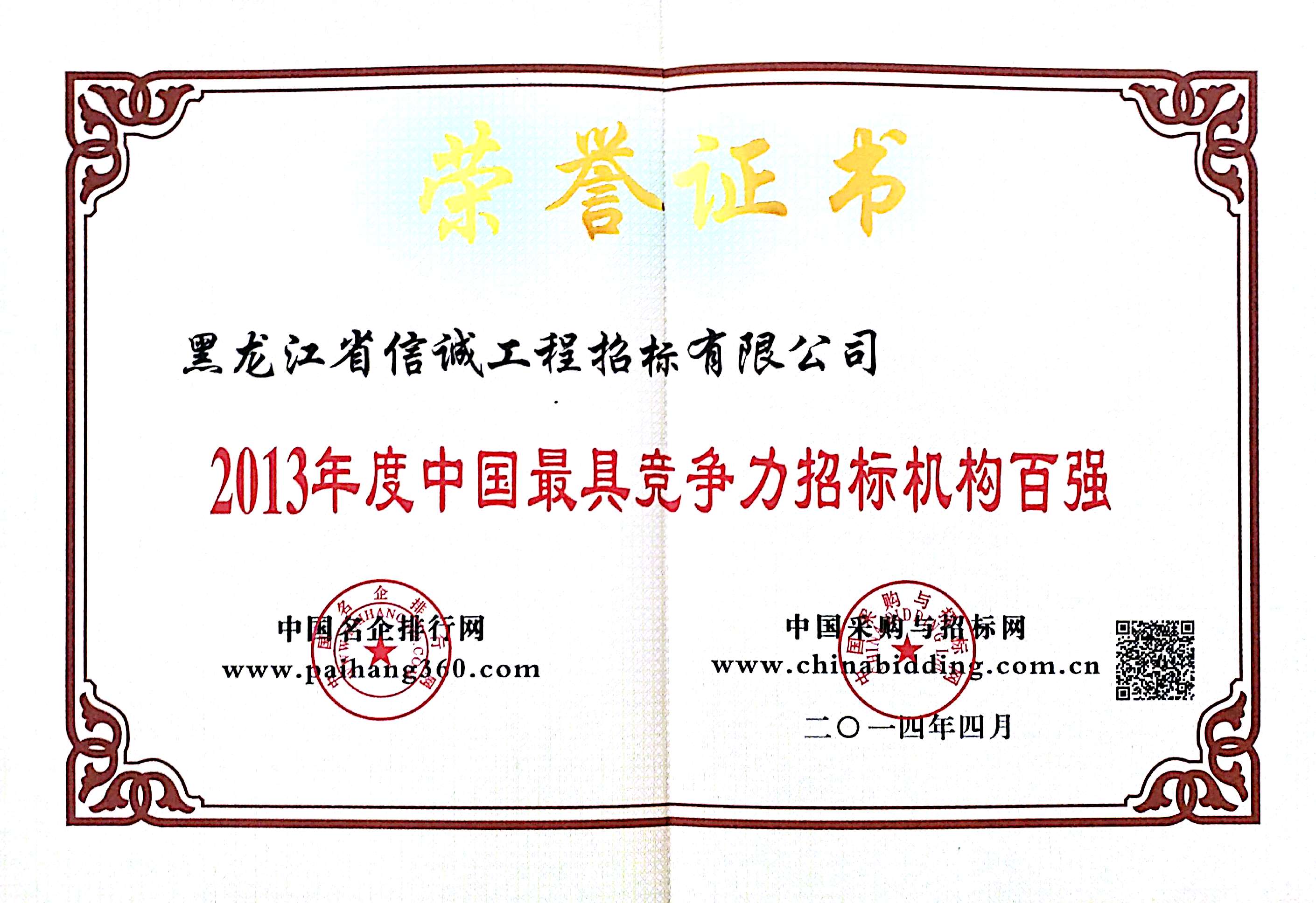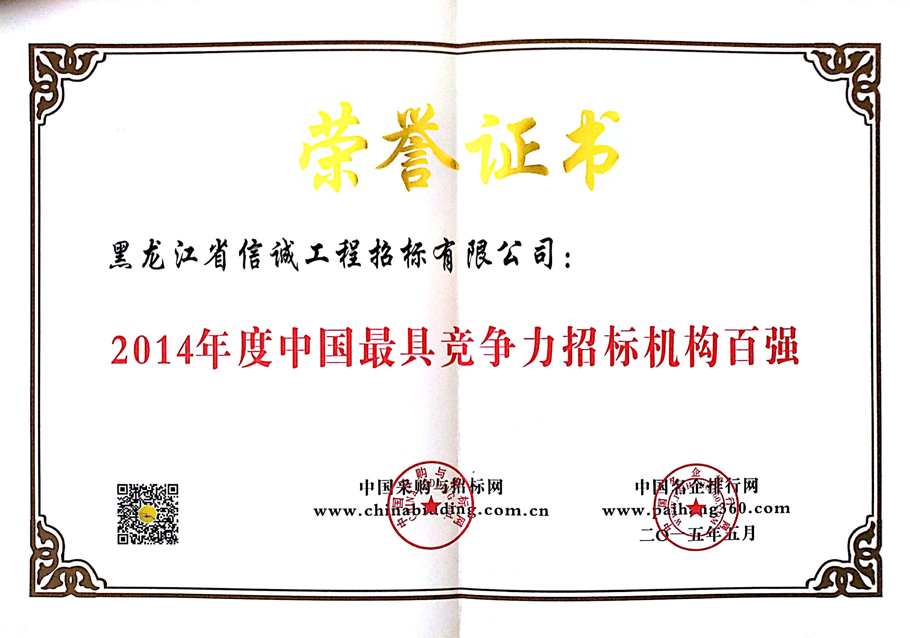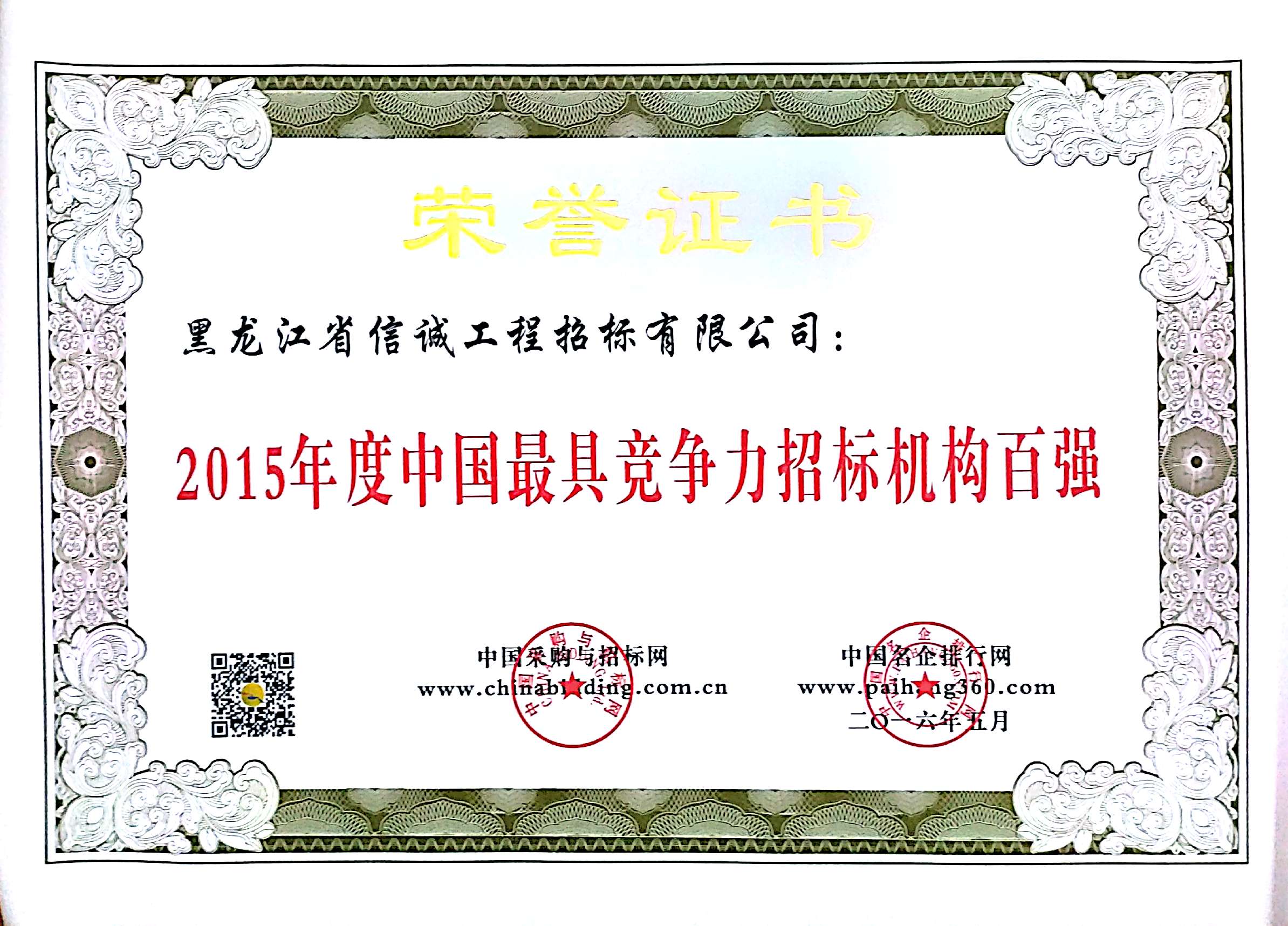 公司榮獲中國(guó)最具競(jìng)爭(zhēng)力招標(biāo)機(jī)構(gòu)百?gòu)?qiáng)榜單重磅推出