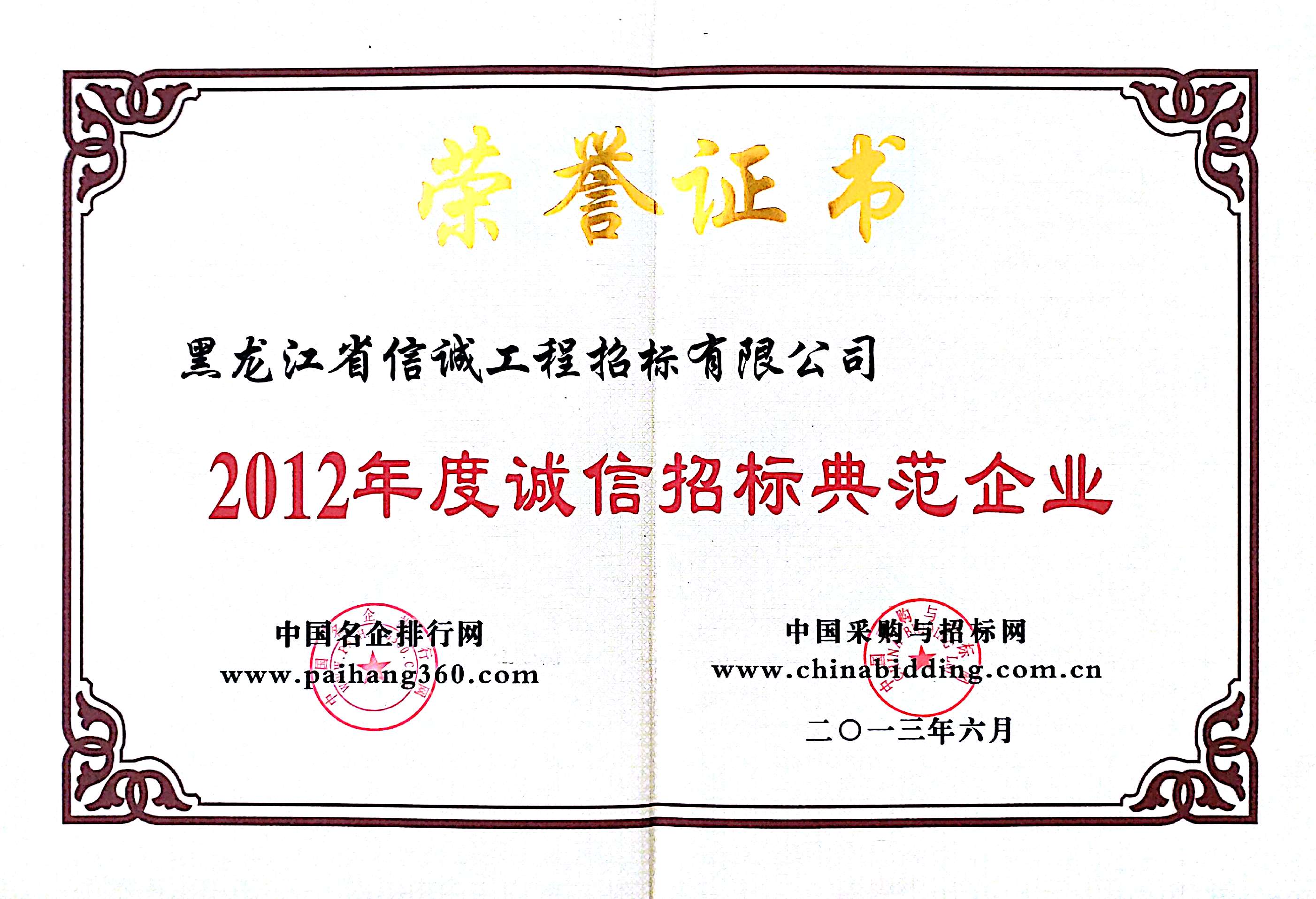 公司榮獲-誠(chéng)信招標(biāo)典范企業(yè)